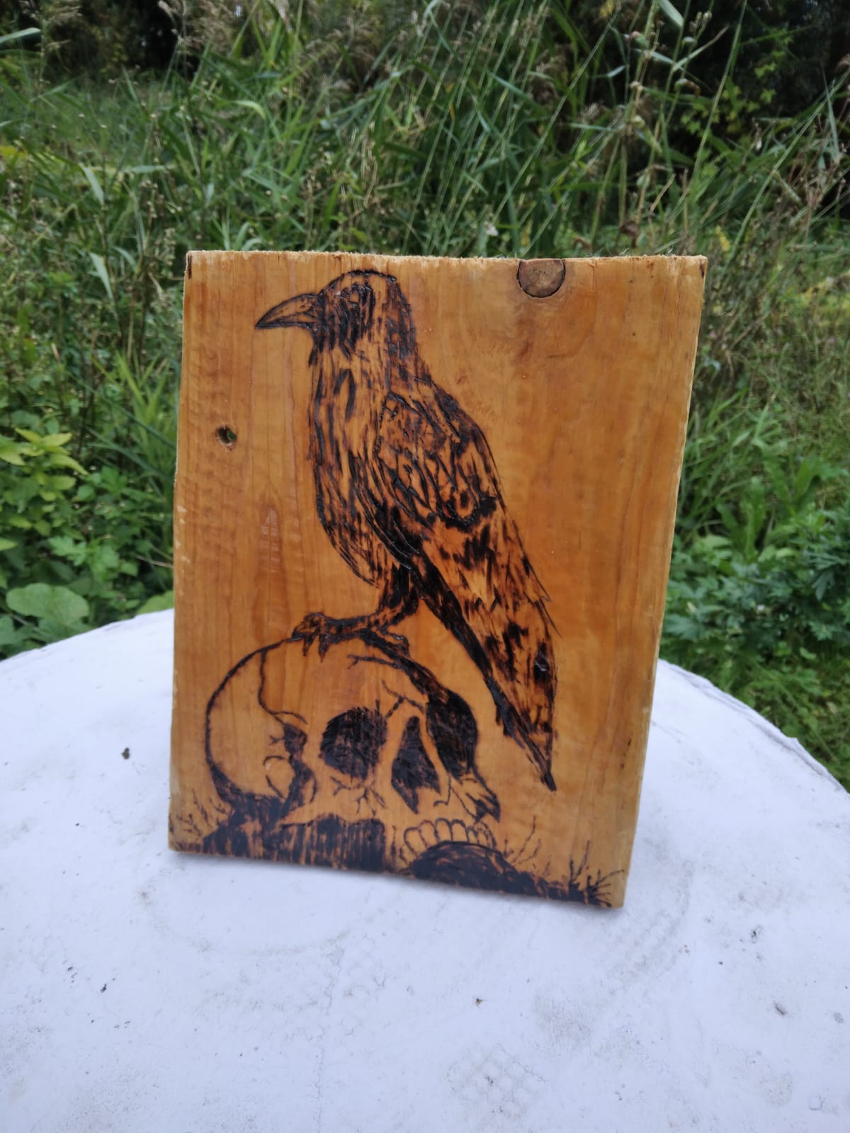 Rozdziubią nas kruki, wrony…- ręcznie wypalany obraz na drewnie